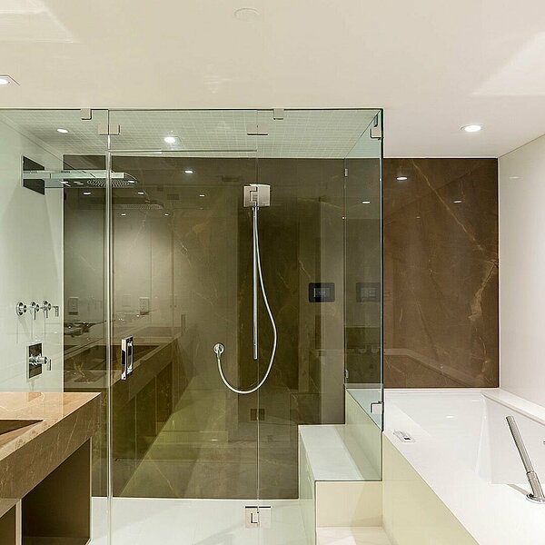 Hochwertige Natursteine und großformatige Keramiken finden immer häufiger ihren Weg in moderne Bad- und Wellnessprojekte. Diese erfordern Materiallösungen, die nicht nur edel aussehen, sondern auch den besonderen Herausforderungen in feuchten Umgebungen standhalten. Unsere hochwertigen Natursteine und großformatigen Keramiken bieten als pflegeleichte, nahtlose Oberflächen die perfekte Lösung. Die ästhetische Anmutung des Materials schafft ein modernes Ambiente, während gleichzeitig die Funktionalität im Fokus bleibt – ideal für Bäder, Pools und Spa-Bereiche, die langlebig und stilvoll zugleich sein sollen.
