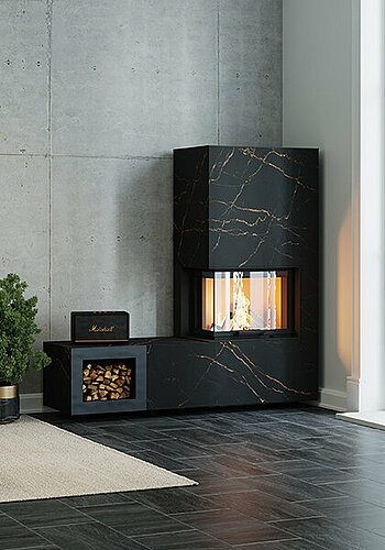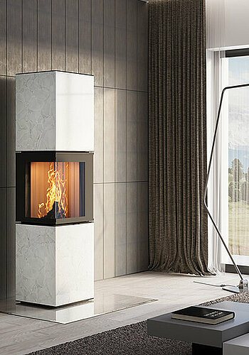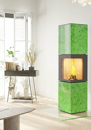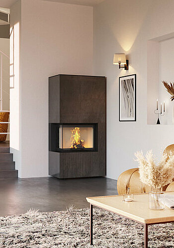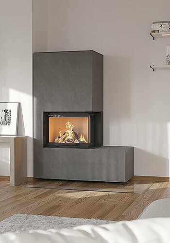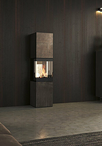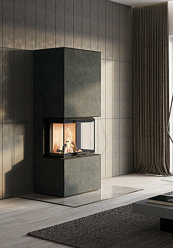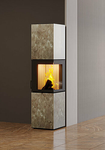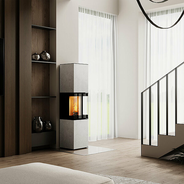 Überzeugen Sie sich selbst von der innovativen Sinterkeramikverkleidung, die nicht nur langlebig und robust, sondern auch ästhetisch überzeugend ist. Mit einem hohen Heizwirkungsgrad von 90 % sorgen diese Kaminöfen für angenehme Strahlungswärme und sind dabei äußerst energieeffizient. Die großzügigen Sichtscheiben bieten klare Sicht auf das Feuer. Dank der modularen Bauweise und der vielfältigen Sinterkeramikoberflächen – von Metall- bis Natursteinoptik – lässt sich jede Feuerstätte individuell gestalten, anpassen und schnell montieren.