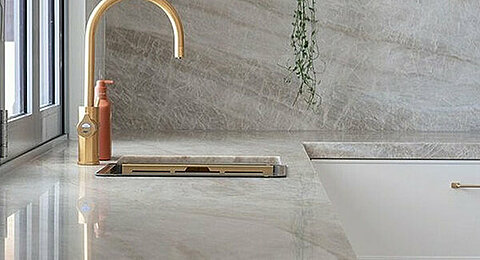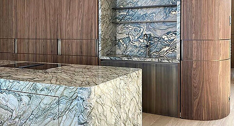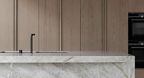 - Jede Küchenarbeitsplatte aus Naturstein ist ein Unikat mit individueller Maserung.