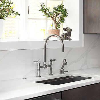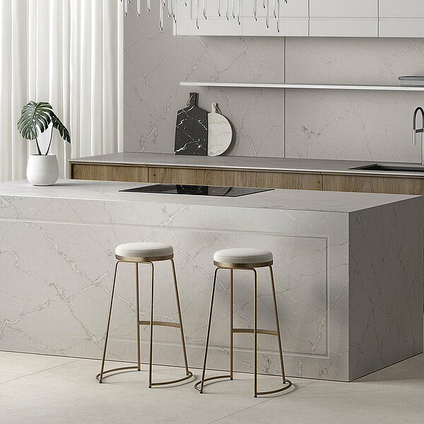 - Quarz-Küchenarbeitsplatten sind widerstandsfähig gegen Flecken, Stöße und Kratzer.