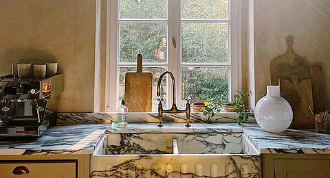 - Es sind auch ganze Küchenblöcke oder Spülbecken aus Naturstein möglich.