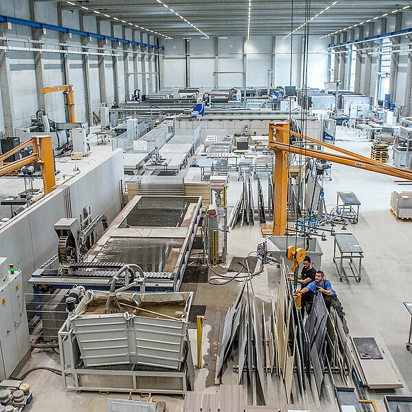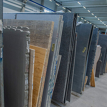 In unseren Produktions- und Lagerflächen in Ungerhausen verarbeiten wir Naturstein und keramische Materialien für die verschiedensten Einsatzbereiche. Modernste, hochautomatisierte Fertigungstechnik und höchste Handwerkskunst garantieren dabei eine hervorragende Qualität und ein starkes Preis-Leistungs-Verhältnis.